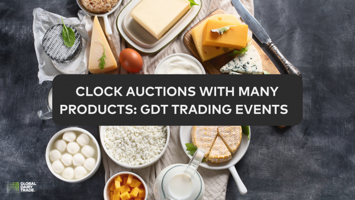 While the basic mechanics of GDT Trading Events can be understood using a simple, single product clock auction as in our previous article, in Trading Events run by GDT, sellers typically offer more than 100 distinct products. While this does not fundamentally alter how the auction operates, it introduces complexities that are essential for participants to understand to be able to navigate a Trading Event successfully.
